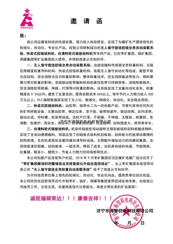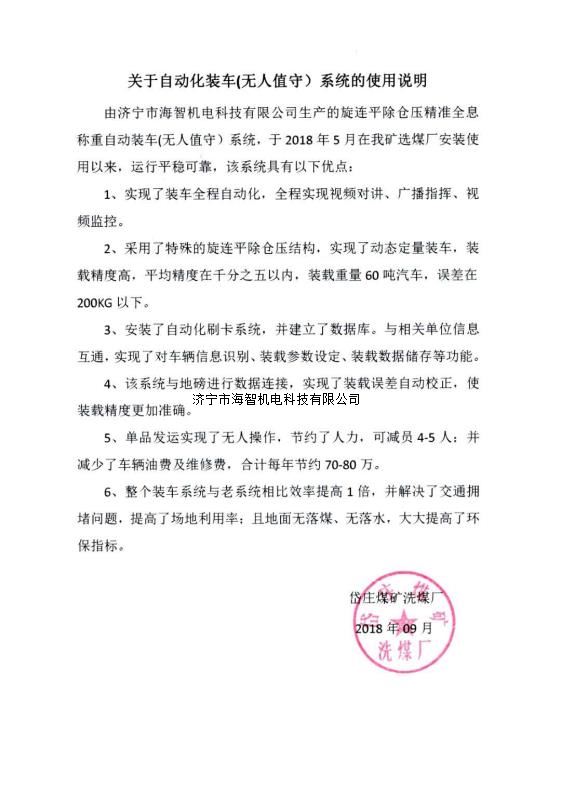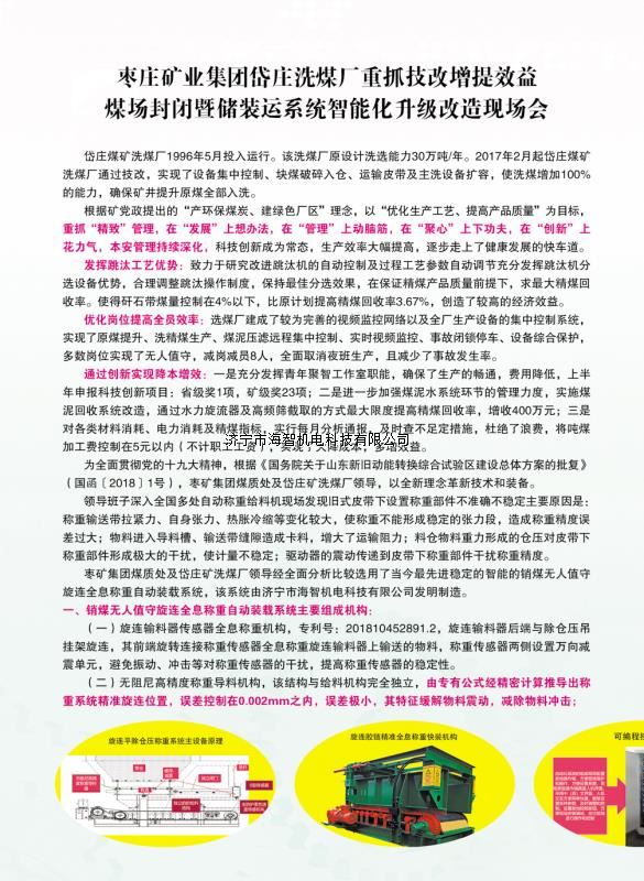 本產(chǎn)品一經(jīng)推出即獲得各大設(shè)計(jì)院及用戶的一致好評,率先在棗礦集團(tuán)岱莊煤礦取得成功應(yīng)用,2018年9月受邀參加了《棗礦集團(tuán)煤場封閉暨儲裝運(yùn)系統(tǒng)智能化升級改造現(xiàn)場會》,智能裝車系統(tǒng)得到了充分肯定!我司憑借雄厚的加工制造實(shí)力及過硬的創(chuàng)新技術(shù)能力,勢必為運(yùn)輸稱重系統(tǒng)、快速計(jì)量裝車系統(tǒng)帶來又一次的技術(shù)創(chuàng)新變革。