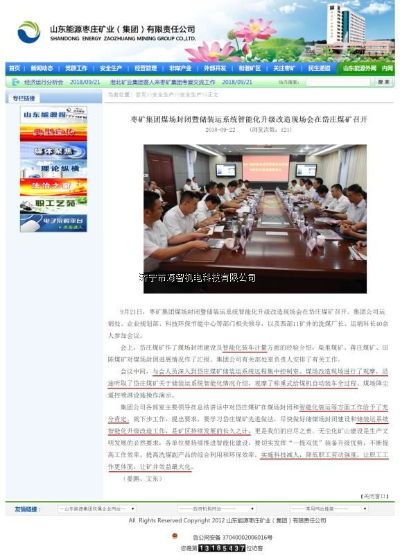 本產品一經推出即獲得各大設計院及用戶的一致好評,率先在棗礦集團岱莊煤礦取得成功應用,2018年9月受邀參加了《棗礦集團煤場封閉暨儲裝運系統(tǒng)智能化升級改造現(xiàn)場會》,智能裝車系統(tǒng)得到了充分肯定!我司憑借雄厚的加工制造實力及過硬的創(chuàng)新技術能力,勢必為運輸稱重系統(tǒng)、快速計量裝車系統(tǒng)帶來又一次的技術創(chuàng)新變革。