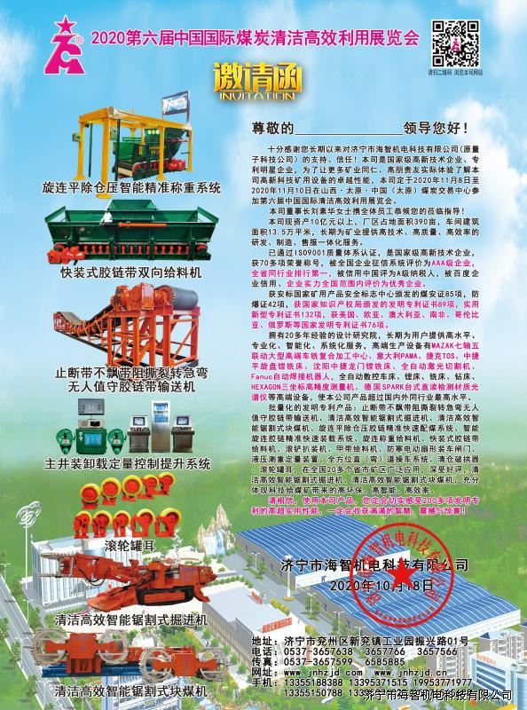 邀請函-第十九屆中國國際煤炭采礦技術交流及設備展覽會
